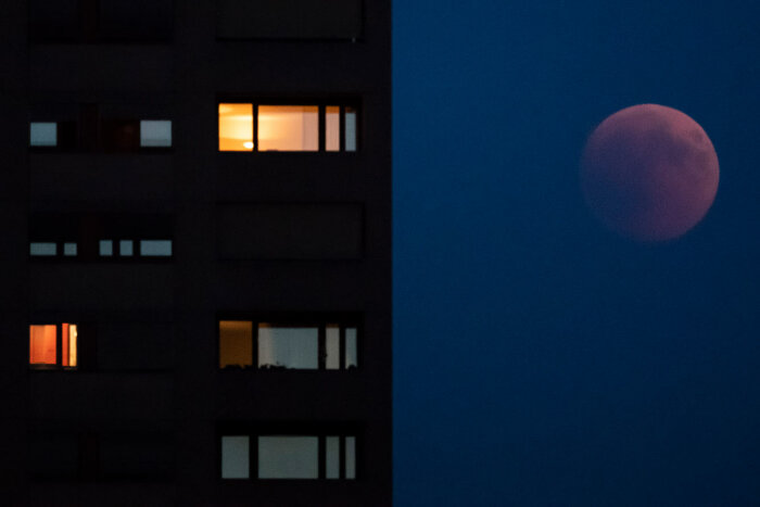 Когда Луна попадает в тень Земли, можно наблюдать другой оптический эффект: она краснеет, будучи подсвеченной рассеянным в атмосфере Земли светом.