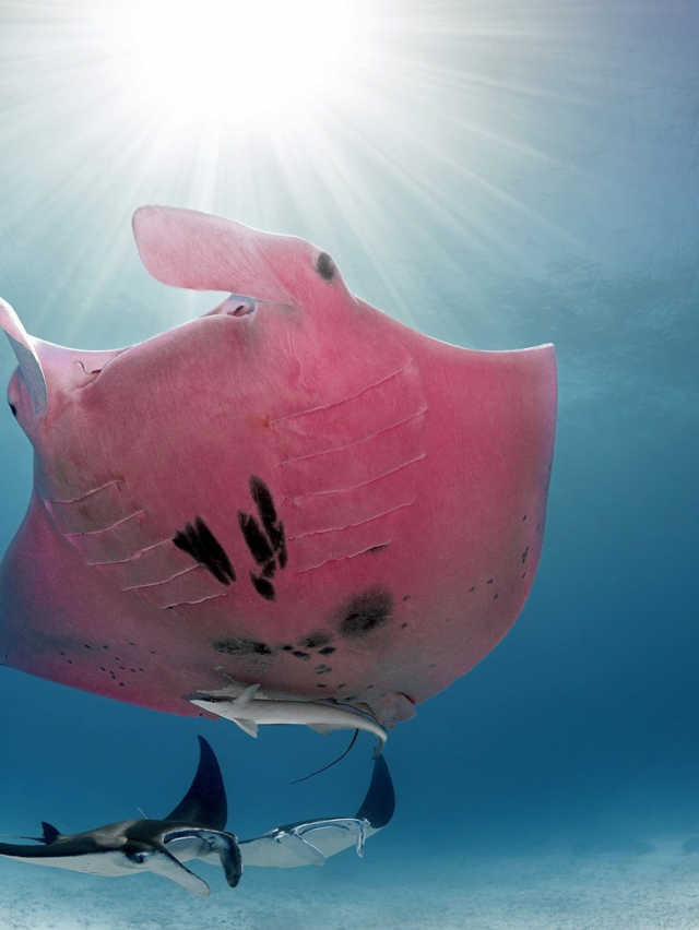 Перед вами единственный в мире розовый скат. Он обитает недалеко от острова Леди-Эллиот, который является частью Большого Барьерного рифа.