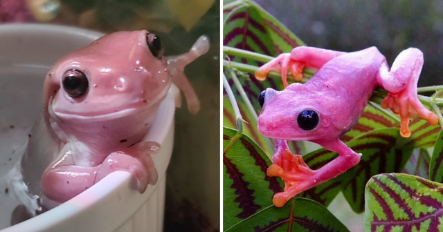 Некоторые виды лягушек, имеют белый, практически прозрачный окрас. Из-за близости расположения мышц и кровеносных сосудов, их цвет может напоминать розовый.