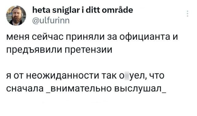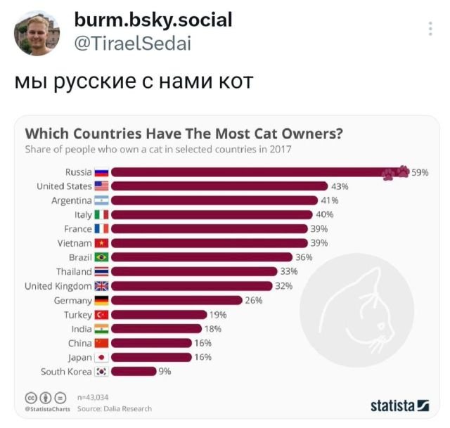 Подборка забавных твитов обо всем 16/04/2024 09:00 Вот и новая подборка забавных твитов. Старый добрый пост, который в представлении не нуждается. Поэтому обойдемся без лишних слов. Всех приглашаем в подборочку и от души желаем веселого просмотра.В каких странах больше всего владельцев котов Главная / Картинки +2 Admin 0 232