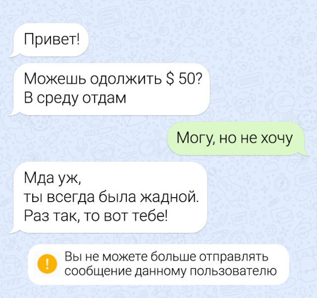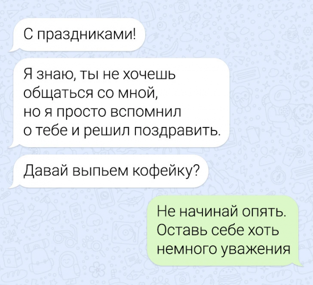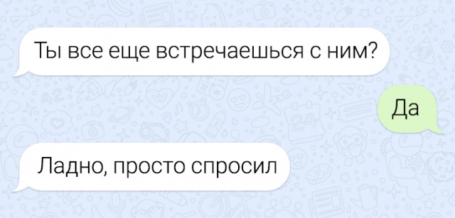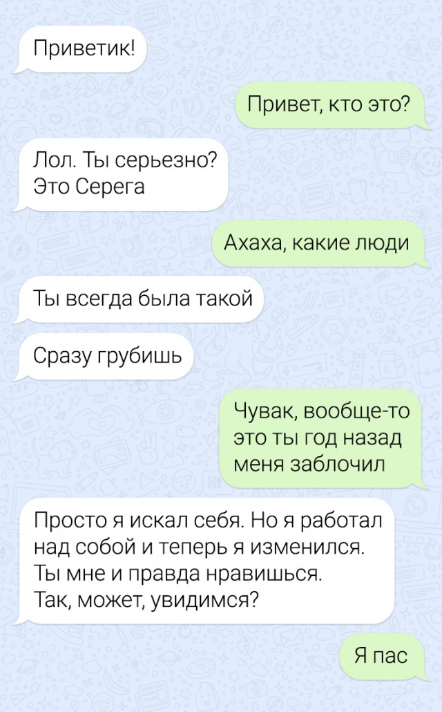 Общение с бывшими - это особый сорт извращений. Причем тяжко приходится как парням, так и девушкам. Ребята с просторов Сети показали свои недавние скриншоты переписок, в которых им "наяривают" бывшие возлюбленные. Признавайтесь, а вы писали бывшим в надежде все вернуть как было или же спокойно продолжали идти вперед?