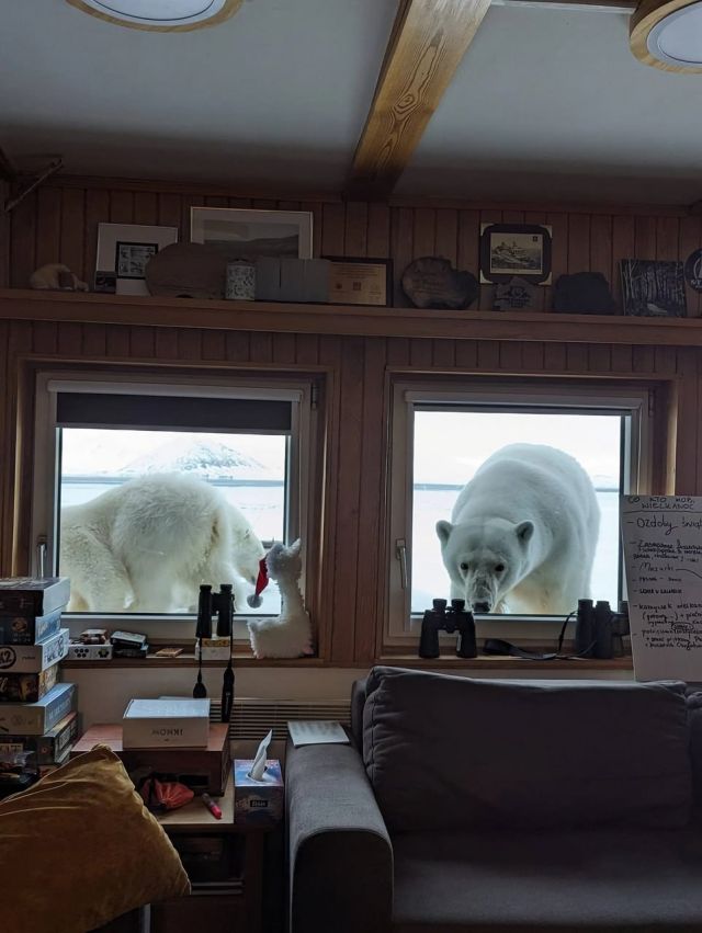 С чего начинается утро? Чай-кофе, умывание, душ, туалет, завтрак... Это понятно. Но все-таки утро начинает с обычного взгляда в окно, когда мы еще лежим в постели. И вот, что видят в окошке по утрам полярники на Шпицбергене.