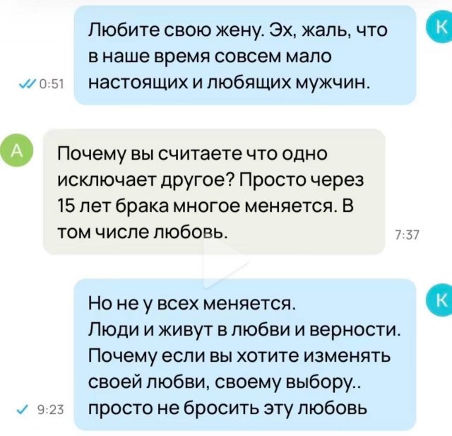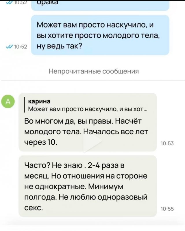 Мужчина предложил девушке стать его любовницей и объяснил, что не так в его браке 18/04/2024 23:00 Необычная переписка опубликована в социальных сетях. Мужчина написал девушке и предложил ей стать его любовницей. А дальше началась психологическая консультация. Главная / Картинки +2 Admin 1 547