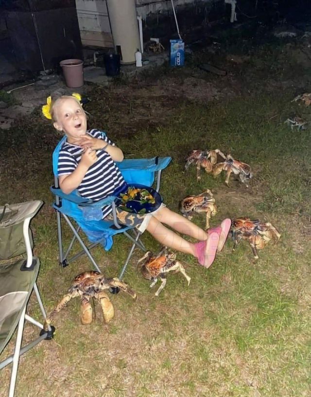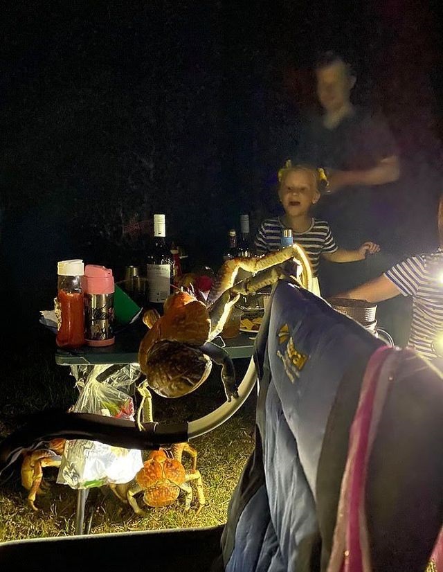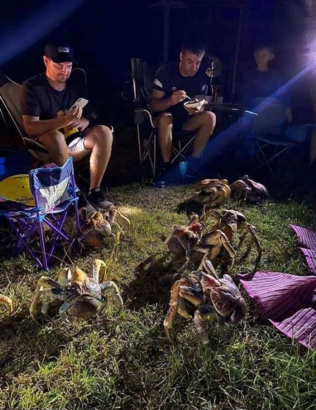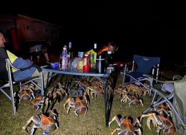 На семейство обрушилось не меньше пятидесяти кокосовых крабов! Их также называют "пальмовые воры", так как эти гиганты отлично умеют лазить по деревьям. А еще они одни из самых крупных наземных членистоногих, длина тела которых может достигать 40 сантиметров! Но есть их не в коем случае нельзя, так как эти крабики охраняются в Австралии как исчезающий вид. В итоге ребятам пришлось оставить им часть еды и искать себе новые местечко.