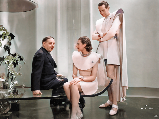 На съёмках фильма «Облик грядущего» (1936). Так в нём был показан 2036-й год
