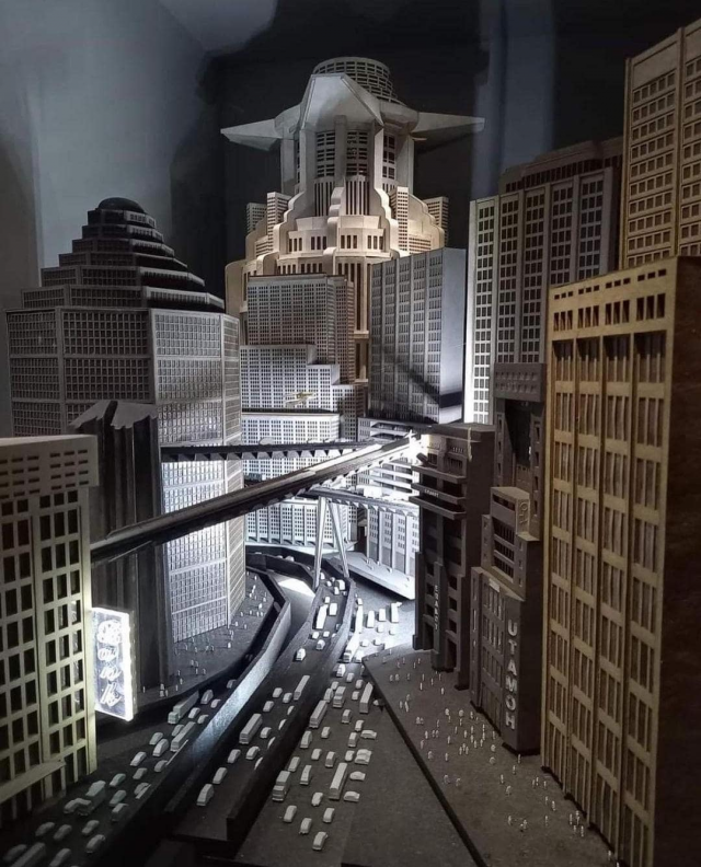 Так город будущего представляли в фильме «Метрополис» (1927). Эти декорации выставлены в немецком киномузее.