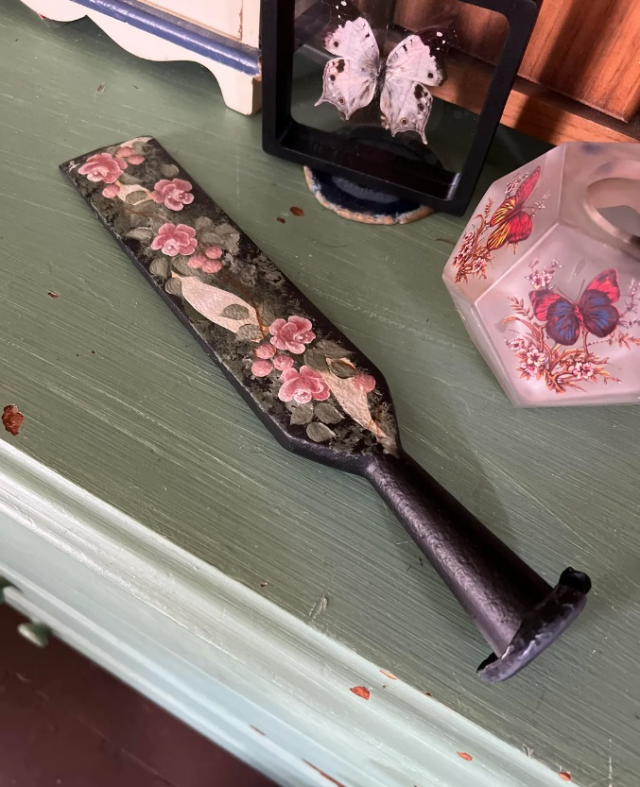 «Плоское, коническое, тяжёлое чугунное весло с цветочным рисунком. Что это?»