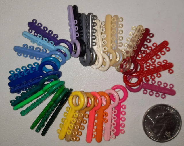 Это резинки для брекетов. В частности, это кольцо — образец, его использовали, чтобы показывать пациентам варианты цвета.