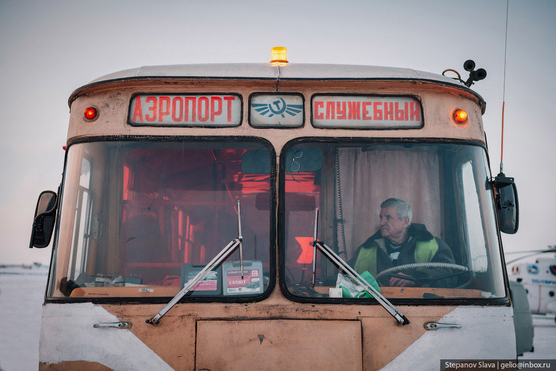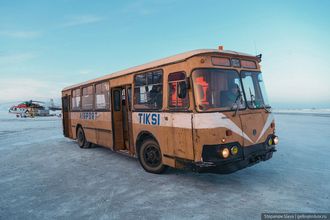 68. Автобус ЛиАЗ-677П «Луноход» в аэропорту Тикси.