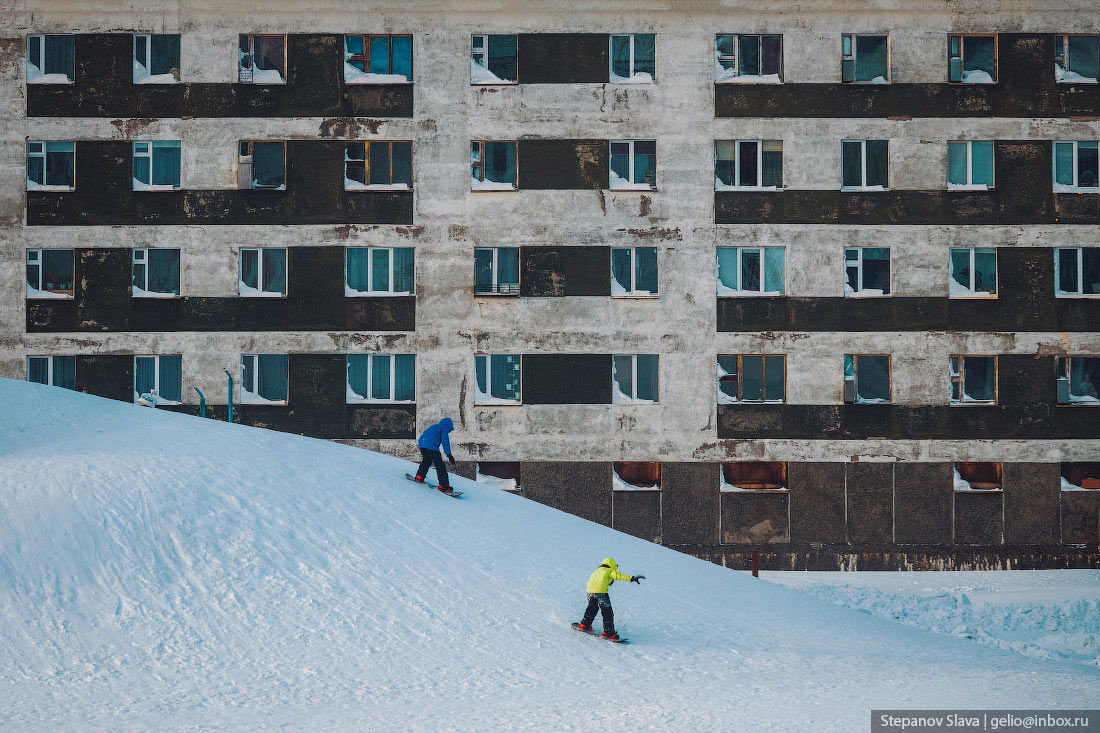 9. Пожалуй, самые северные сноубордисты страны. Ребята скатываются с обычного сугроба, который намело во дворе жилого дома.