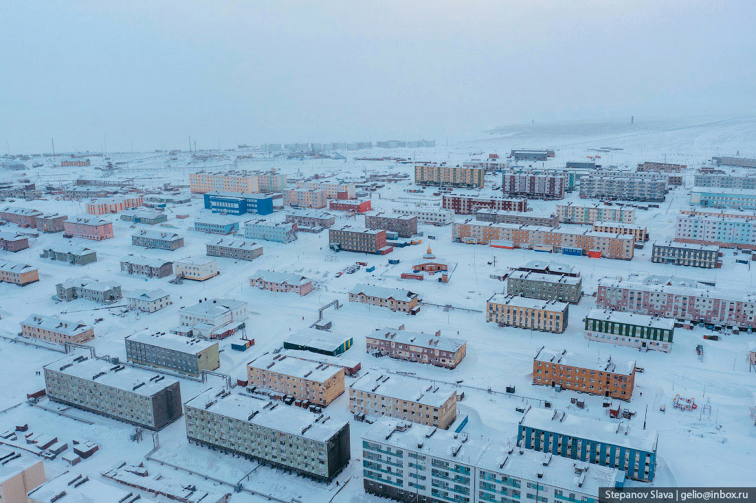 29. Разноцветными здания сделаны по северному обычаю, чтобы было легче ориентироваться в пургу.