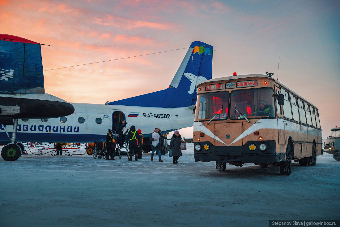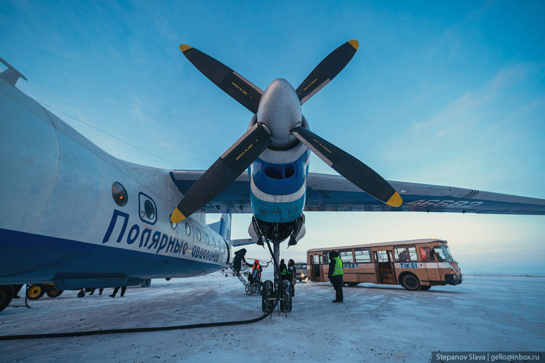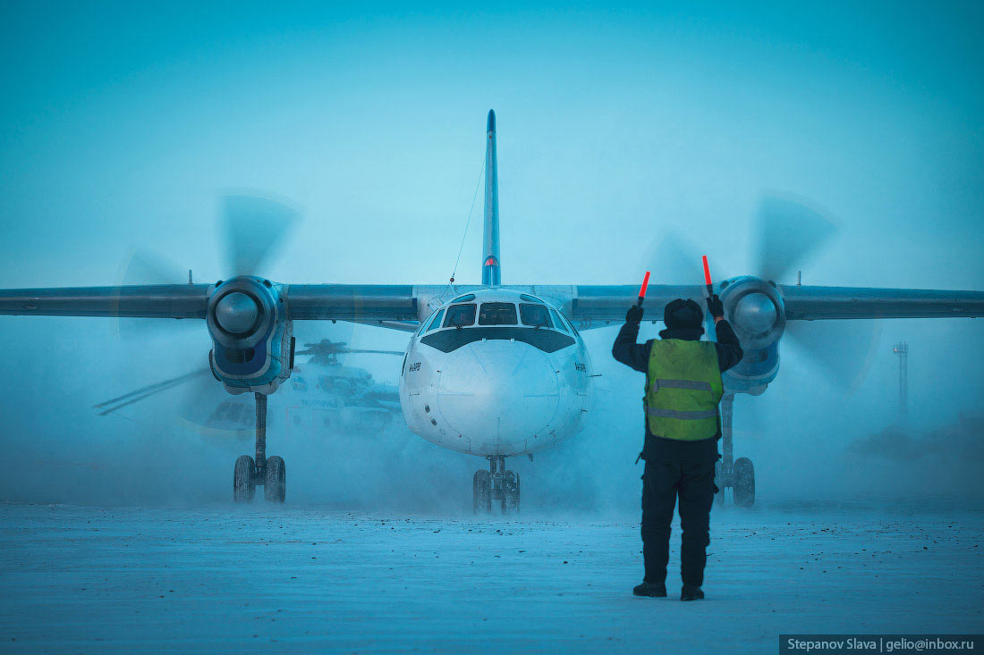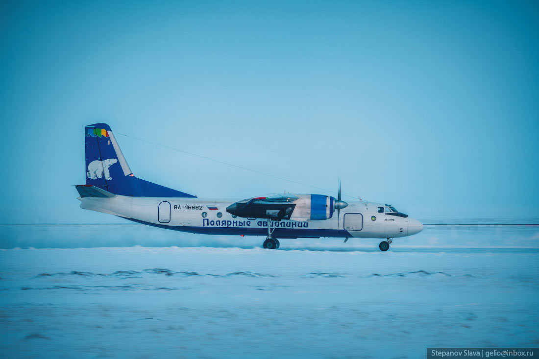 65. Пассажирский самолёт Ан-24 «Полярных авиалиний». С советских времён эта модель очень удобна для превозок в условиях заполярья — самолёт способен совершать посадку как на небольшие неподготовленные аэродромы, так и на грунт.