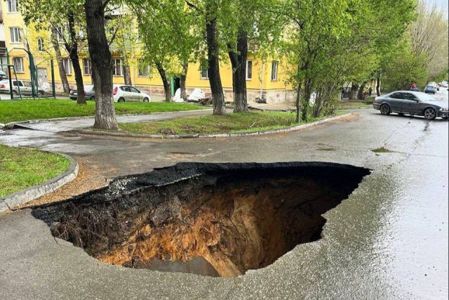 Сегодня утром в Челябинске произошла довольно жуткая история. Перед автомобилем местного жителя начал проседать асфальт, но он успел остановиться и перегородить своей машиной проезд. Теперь посреди дороги красуется огромная и глубокая яма. По предварительной информации, яма образовалась из-за аварии на самотечном коллекторе.
