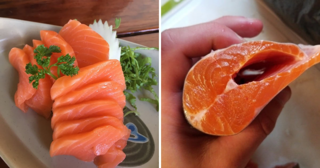 Если вы собираетесь приобретать свежую, неразделанную рыбу, то отличит сёмгу от форели вам не составит особого труда. Сёмга имеет ровный серебристый окрас, форель же пёстрая и яркая. Основные сложности возникают при покупке стейков или филе. Внешне мясо рыб чрезвычайно похоже. Главным отличием является то, что мясо сёмги имеет чуть более яркий оттенок.