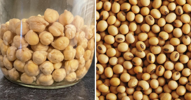 Семена нута маленькие, круглые и имеют лёгкий ореховый привкус. Соя внешне очень похожа на нут, но не имеет как такового выраженного вкуса, благодаря чему она так высоко ценится при производстве различных продуктов.