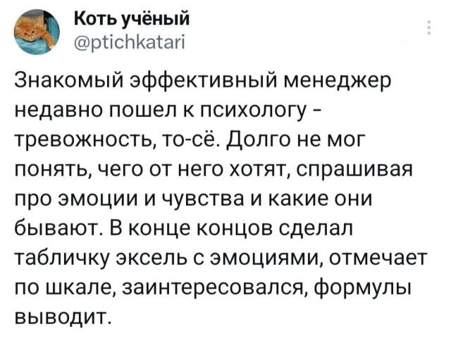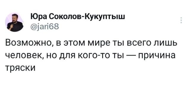 Подборка забавных твитов обо всем 09/05/2024 17:00 Вот и новенькая подборка забавных твитов. Постец вам хорошо знаком, поэтому не будем тратить драгоценные минуты на вступление. Всех без промедления приглашаем в подборку и желаем приятного просмотра. Главная / Картинки 0 Admin 0 178