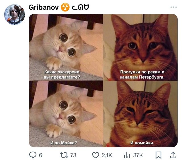 Подборка забавных твитов обо всем 22/05/2024 23:30 Вот и новенькая подборка забавных твитов обо всем. Как говорится, не опять, а снова! И это здорово, ведь позитивного контента мало никогда не бывает. Всех приглашаем в пост и желаем веселого просмотра. Главная / Картинки +4 Admin 1 259