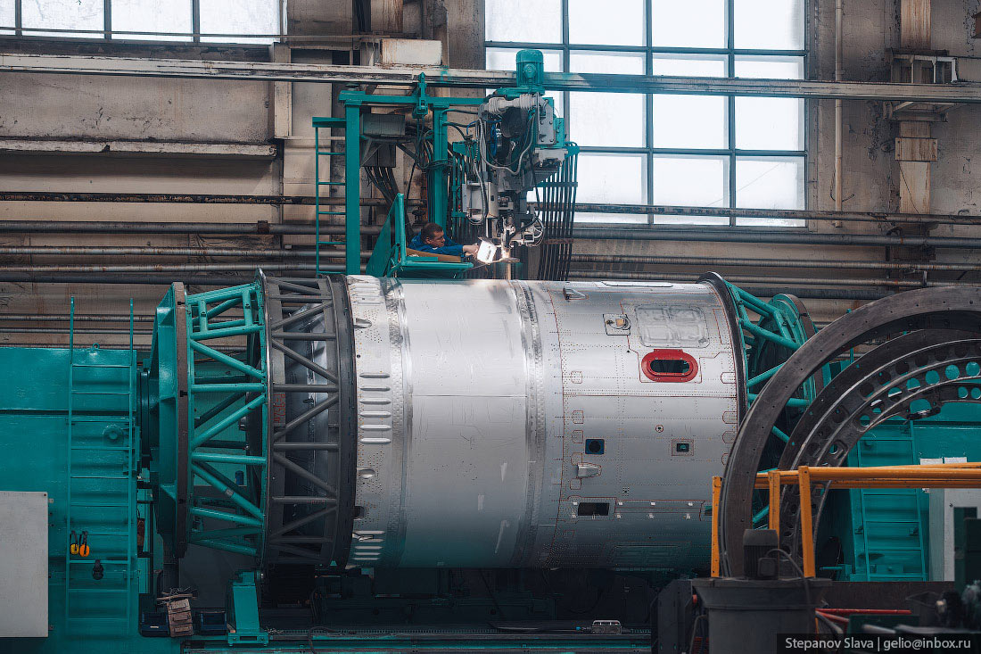 6. Топливные баки для РН «Союз» варят из цельных листов металла прямоугольной формы в агрегатно-сварочном цехе предприятия. Здесь производят все 12 баков, которые составляют одну целую ракету.
