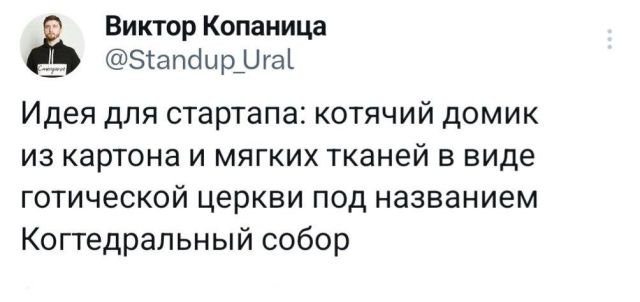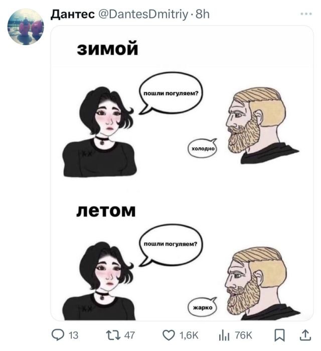 Подборка забавных твитов обо всем 28/05/2024 22:20 Вот и новая подборка забавных твитов. Как говорится "снова-здорово". Поэтому самое время чуть-чуть расслабиться и поднять себе настроение. Всех приглашаем в пост и желаем веселого просмотра. Главная / Картинки +1 Admin 0 123