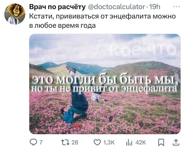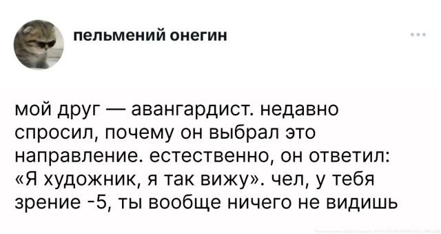Подборка забавных твитов обо всем 30/05/2024 15:00 Вот и новенькая подборка забавных твитов на самые разные темы от веселых ребят с просторов Сети. А это значит, что самое время взять маленькую паузу и немного расслабиться. Всех приглашаем в пост и желаем приятного просмотра. Главная / Картинки +1 Admin 0 187
