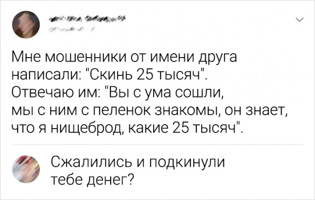 Подборка смешных комментариев 31/05/2024 17:00 Комментарии - это как острый соус. Вроде можно и без него обойтись, но с ним гораздо вкуснее! Так что давайте добавим перчинки в ленту и поглядим новую подборку смешных комментариев с просторов Сети. Главная / Картинки +1 Admin 0 139