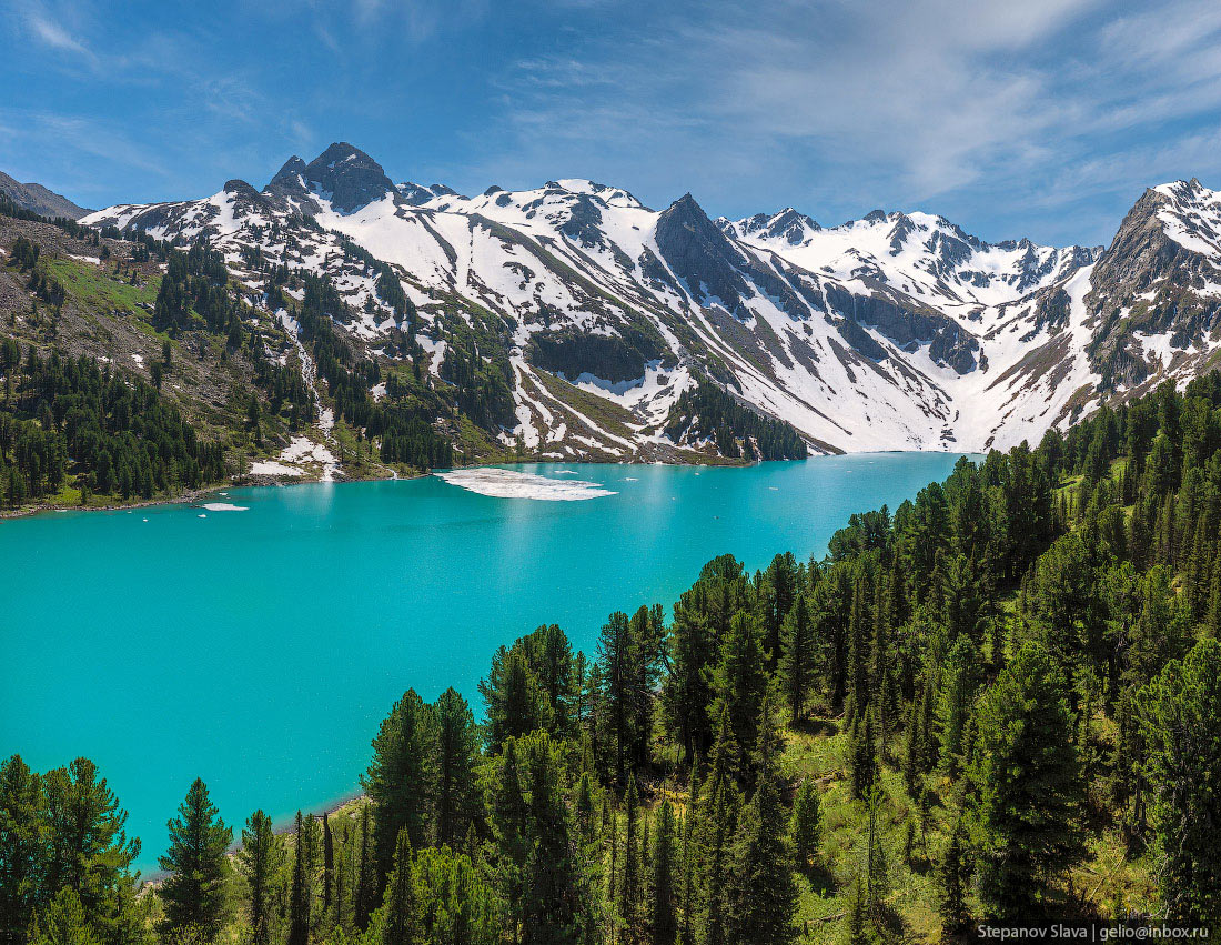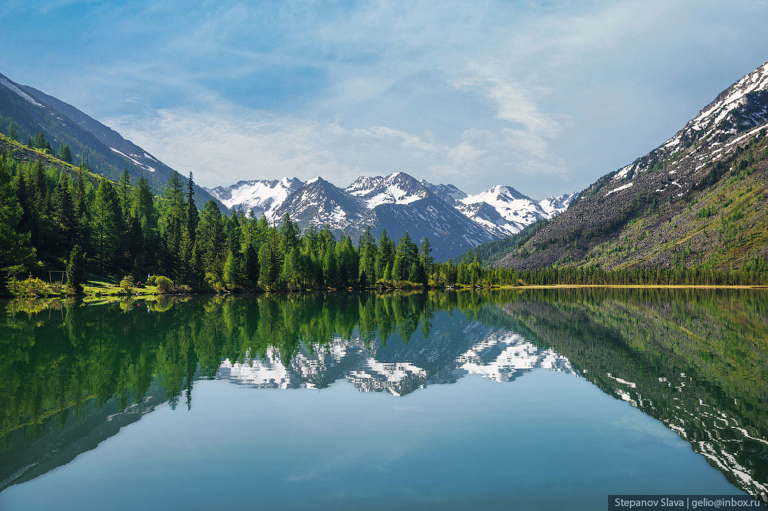 1. Мультинская группа озёр находится в Усть-Коксинском районе республики Алтай. К ней относят больше 40 озёр разного размера и глубины на северном склоне Катунского хребта. Самые большие и популярные из них: Нижнее, Среднее, Верхнее Мультинские озёра, образующие каскад на реке Мульта, а также Куйгук, Поперечное и Крепкое. Вода в каждом водоёме разного цвета — от бирюзового и изумрудного. Это зависит от горных пород, в которых находится котловина. Кроме того, вокруг огромное количество прочих природных достопримечательностей: горные вершины, покрытые снегами, реки, водопады, изобилие рыбы, грибов и ягод.