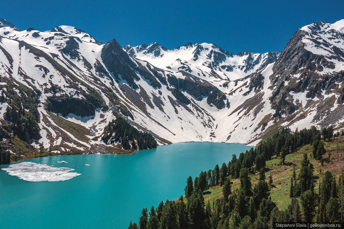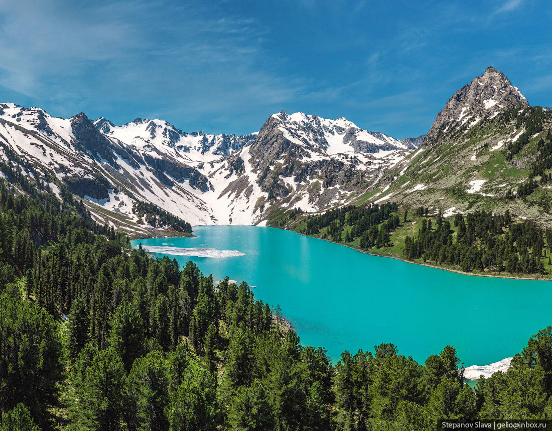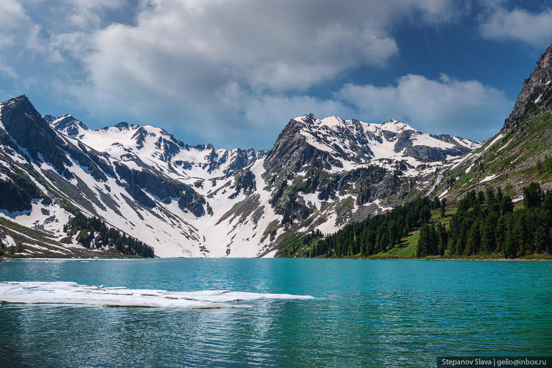 36. Так как озеро Куйгук находится не только значительно выше других водоёмов Мультинской группы, но и постоянно закрыто от солнца горными грядами, на нём очень долго держится ледовый покров.