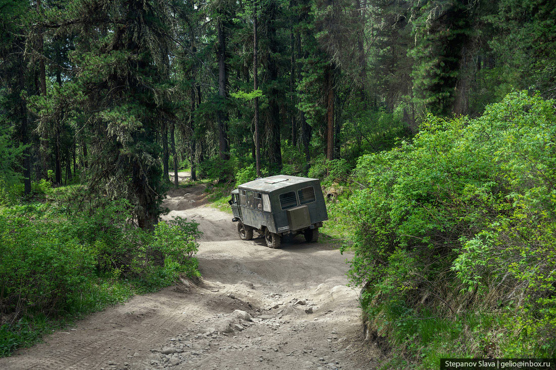 4. Путь к Мультинским озёрам начинается с посёлка Мульта — 422 км от Горно-Алтайска. Отсюда через сёла Замульта и Маральник-1 стартуют большинство маршрутов. Для «заброски» туристов до начала тропы чаще всего здесь используют автомобили ГАЗ-66 «Шишиги», а также УАЗы и прочий транспорт повышенной проходимости — другим машинам намного сложнее преодолевать распутицу, валуны, подъём в гору и прочие препятствия. Впрочем, многим туристам, спасшихся временем и силами, не составляет труда пройти первую часть маршрута пешком — это порядка 14 км от Маральника-1 до Нижнего Мультинского озера с набором высоты 470 м.
