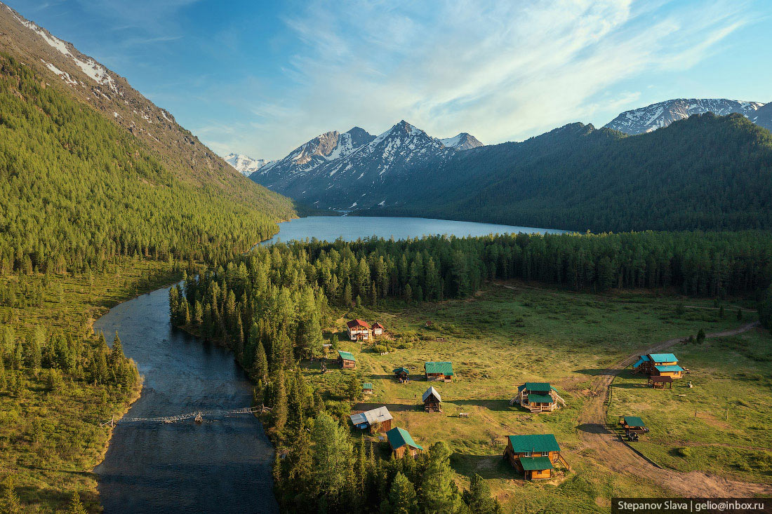 6. Туристические базы возле Нижнего озера. Здесь заканчивается дорога для автотранспорта и начинаются маршруты для пеших туристов, на лошадях и на катерах, оборудованы места для палаток, домики, поэтому летом во время туристического сезона жизнь здесь бьёт ключом.