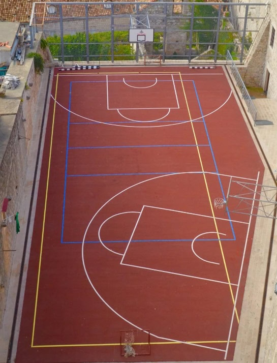 Площадка для мини-футбола, волейбола и баскетбола одновременно. Вот это экономия пространства!