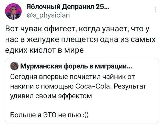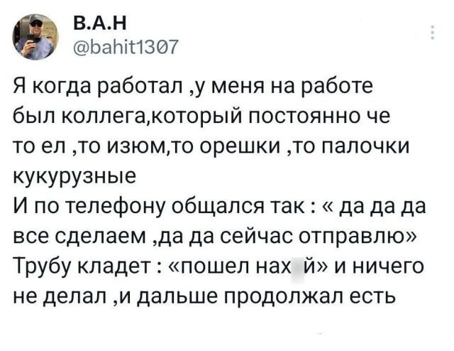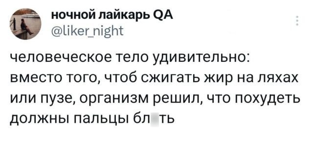 Коллекция смешных твитов на разные темы 04/06/2024 22:00 Все-таки хорошо, когда в жизни есть хоть немного стабильности. На работе может твориться полный бардак, но сердечко греет то, что на перерыве вас ждет новая подборка забавных твитов. Мелочь, но приятно! Всем приятного просмотра. Главная / Картинки +3 Admin 0 164