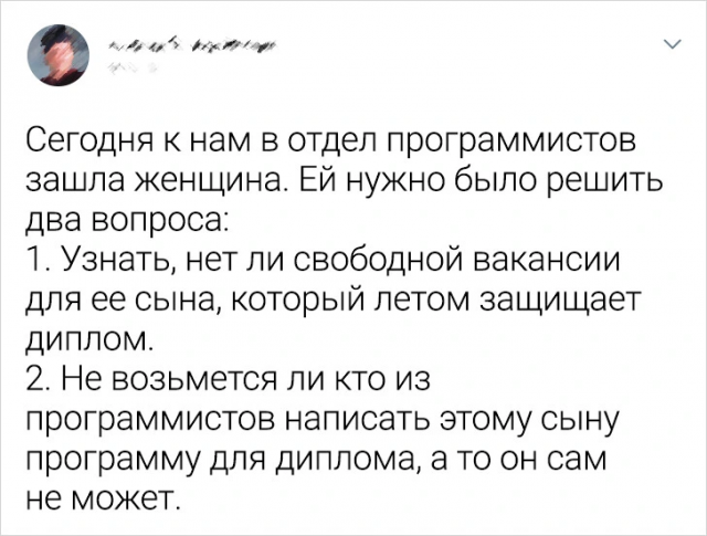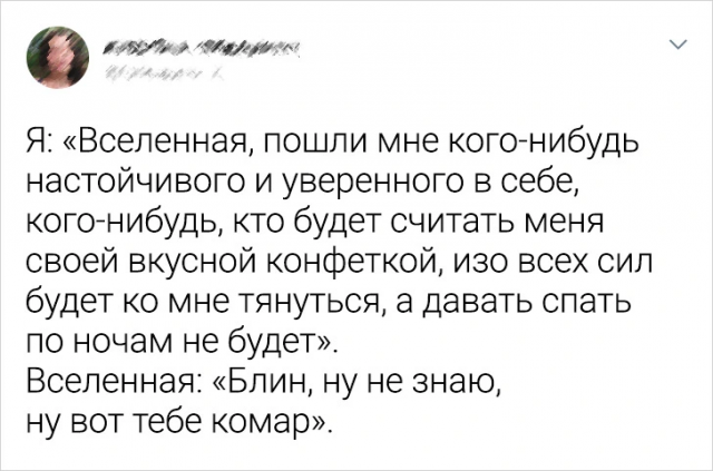 Подборка забавных твитов 06/06/2024 15:00 Некоторые люди не могут жить так, чтобы не оказаться в какой-нибудь забавной ситуации. Даже если они будут спокойно сидеть дома, приключения их все равно найдут. Истории о таких товарищах заряжают хорошим настроением на весь день. Главная / Картинки +1 Admin 0 194