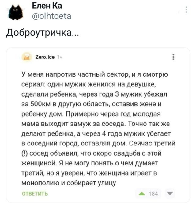 Подборка забавных твитов обо всем 07/06/2024 17:00 Вот и новая подборка забавных твитов. Отличный повод для маленького перерыва для поднятия настроения. Так что всех милости просим в пост и желаем веселого просмотра. Главная / Картинки +1 Admin 0 183