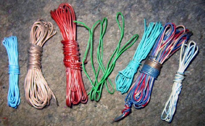 Толстая аллюминиевая и тонкая медная проволока в разноцветной обмотке