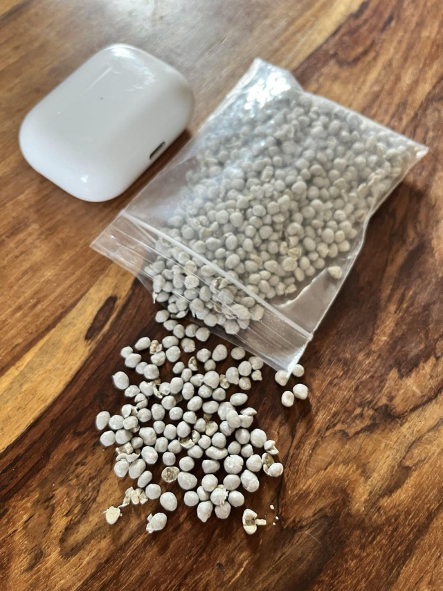 «Пакетик с серыми гранулами найден на кухонном шкафу. Они неправильной формы и достаточно тяжёлые»