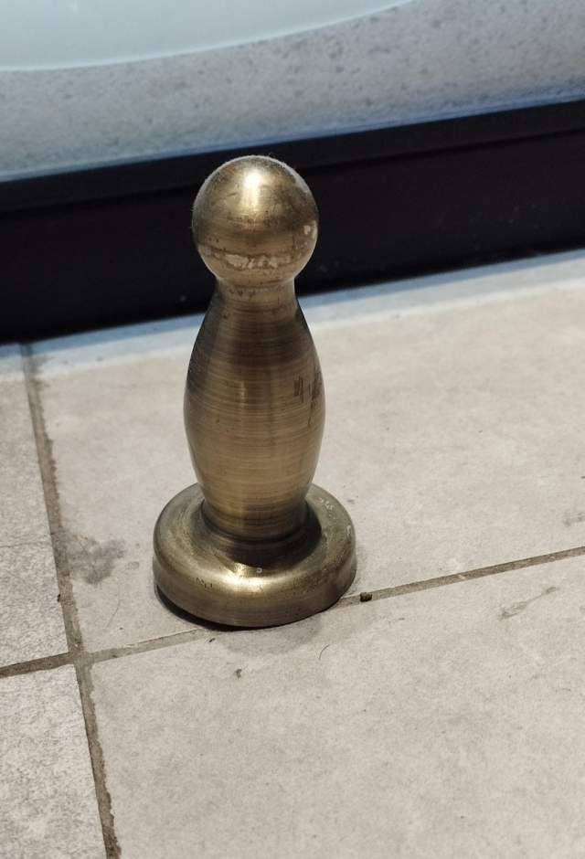 Странная штуковина была обнаружена в раздевалке торгового центра, где покупатели могли примерить одежду. Такое нехитрое приспособление позволяет предотвратить разбивание зеркала, так как не позволяет подъехать с тележкой чрезмерно близко.