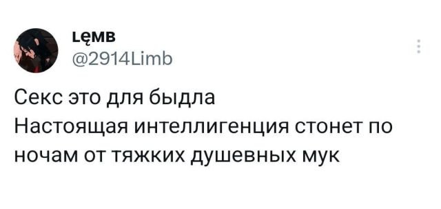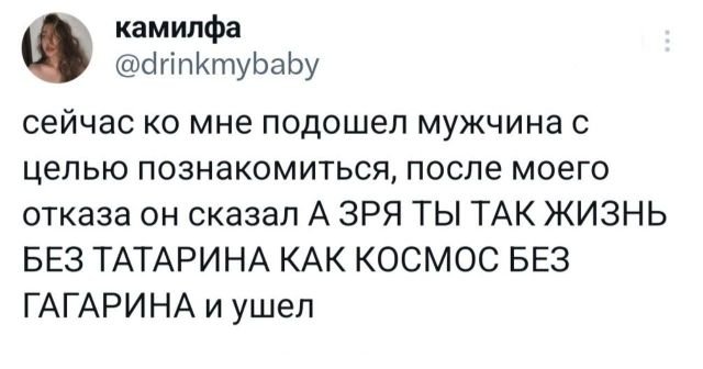 Подборка забавных твитов обо всем 19/06/2024 23:00 Твитушки! Не опять, а снова, как говорится. И такая стабильность не может не радовать. Ибо хорошего настроения мало не бывает. Так что плесните себе в кружечку что-нибудь вкусное, располагайтесь и всем веселого просмотра. Главная / Картинки +2 Admin 0 197