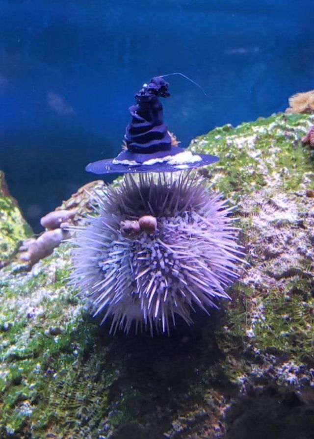Выяснилось, что морским ежам нравятся головные уборы. Эти колючие создания используют всевозможные предметы, чтобы укрыться от лучей солнца. Морские биологи решили прийти им на помощь, создав при помощи 3D-принтера миниатюрные шляпки, которые ежи с радостью носят. Более того, существует целая индустрия шляп для домашних аквариумов.