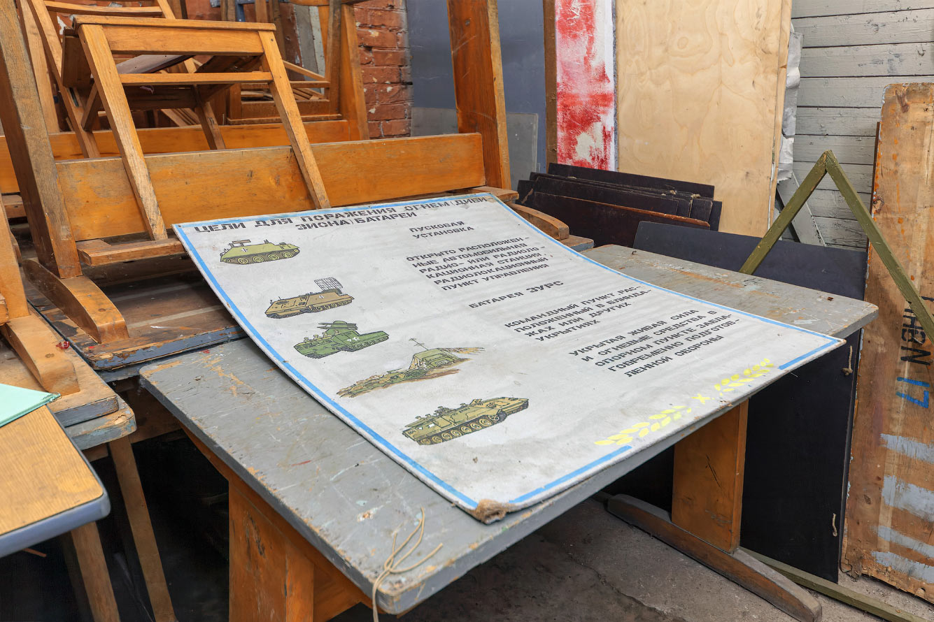 Обычно в таких местах где кого-то учат или к чему-то подготавливают находиться много наглядных пособий. Чаще всего это плакаты, которые остаются даже тогда, когда здание уже давно заброшено, иногда только они и остаются.