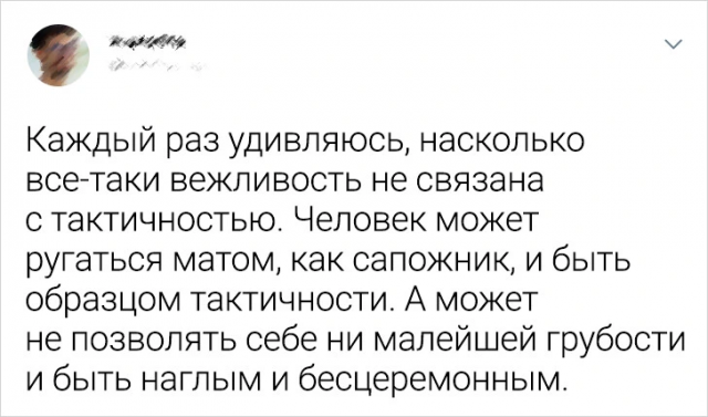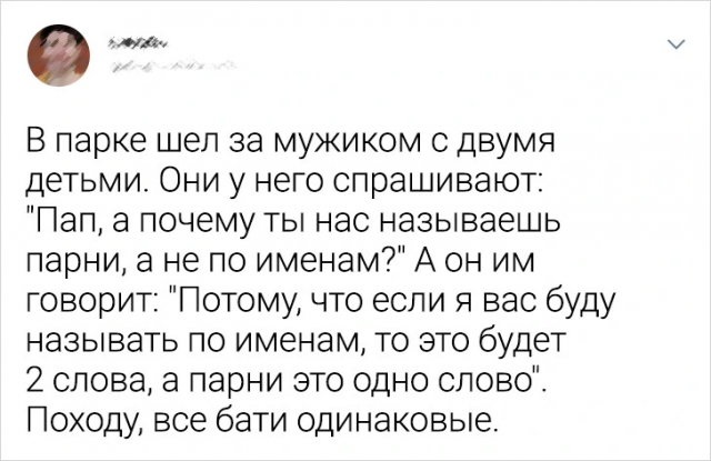Подборка забавных твитов 01/07/2024 17:00 С течением времени жизнь преподносит нам такие сюрпризы, что многие окружающие могут сказать: «Не волнуйся, у меня было так же». Именно этими ситуациями и размышлениями о повседневной жизни поделились ребята из этой подборки твитов. Главная / Картинки +1 Admin 0 112