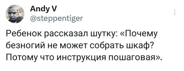 Подборка забавных твитов обо всем 04/07/2024 14:00 Вот и новая подборка забавных твитов. То, что нужно для поднятия настроения! Поэтому всех без промедления приглашаем в пост. Всем веселого просмотра. Главная / Картинки 0 Admin 0 189