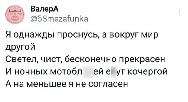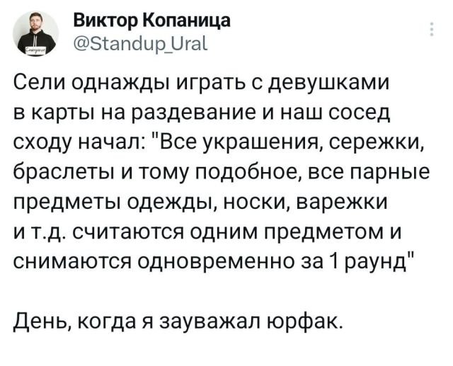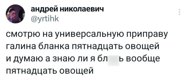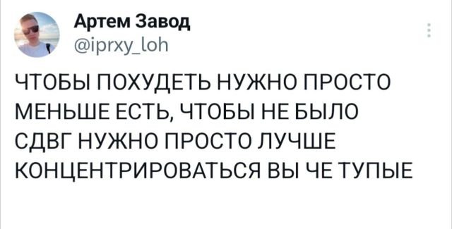 Подборка забавных твитов обо всем 04/07/2024 23:30 Позитивного контента мало никогда не бывает! Так что держите еще одну подборочку забавных твитов от остроумных ребят с просторов Сети. Давайте поглядим, что новенького они нам приготовили. Главная / Картинки 0 Admin 0 193