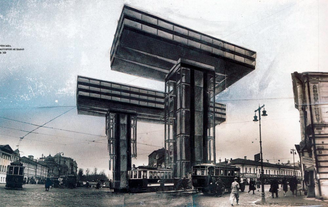 На втором рисунке за Аркой виден легендарный, также не построенный Дворец Советов.