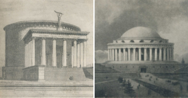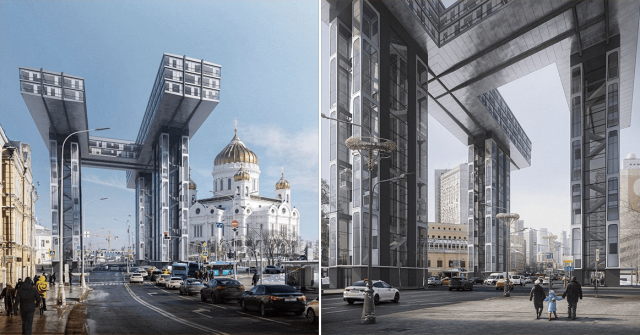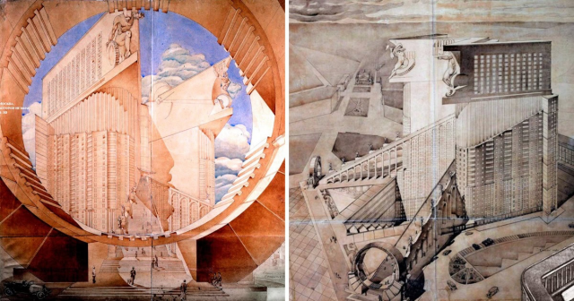Рисунок самого Фомина и современная 3D-модель, которая демонстрируем масштабность замысла.