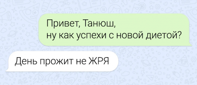 «Подруга вчера сказала, что садится на новую жесткую диету. Решила сегодня написать ей»