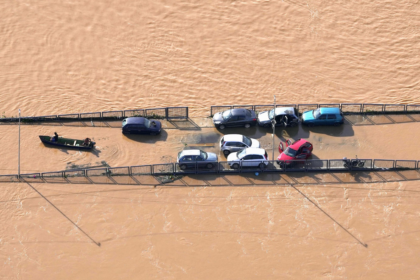 На снимке с дрона видны транспортные средства в районе, пострадавшем от наводнения, в Энкантадо, штат Риу-Гранди-ду-Сул, Бразилия. (Фото Diego Vara):