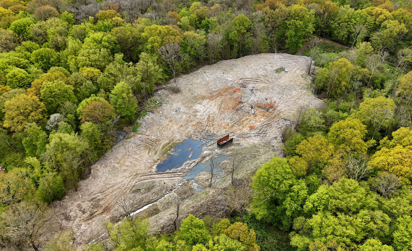 Незаконная свалка отходов производства на территории заповедника Хоадс-Вуд в Эшфорде, хотя этот лесной массив признан заповедником из-за большого количества птиц, насекомых и деревьев. Кент, Великобритания. (Фото Gareth Fuller):