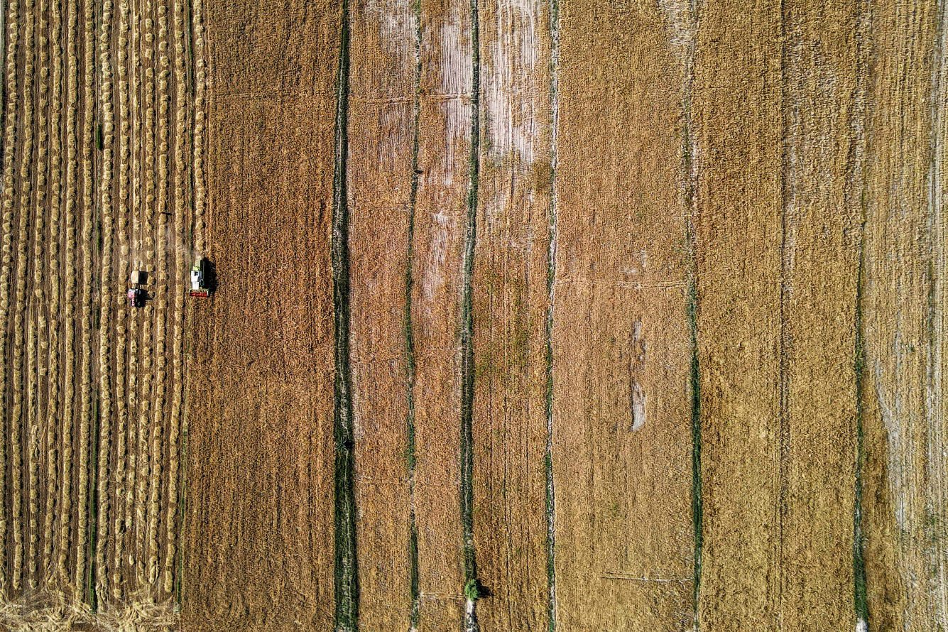 Комбайны, движущиеся по пшеничному полю в районе Аббасия центральной провинции Ирака Наджаф. (Фото Ahmad Al-Rubaye):