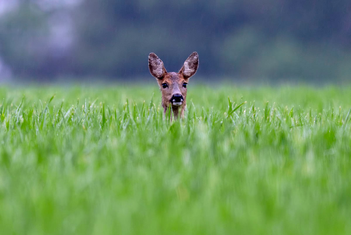 Олень стоит в густой траве в Верхайме, недалеко от Франкфурта, Германия. (Фото Michael Probst):