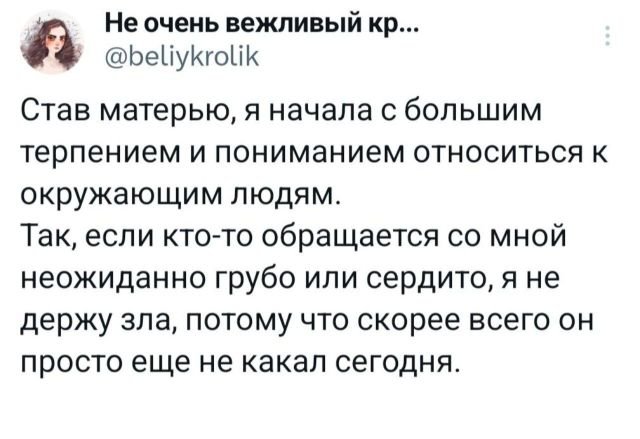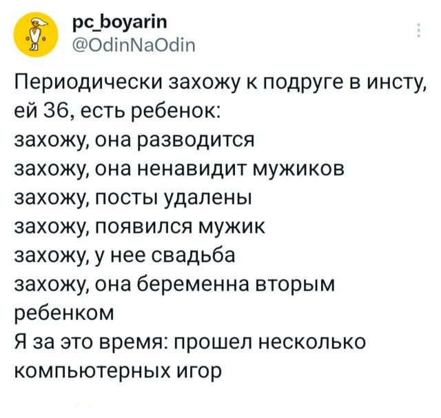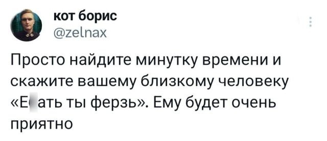 Подборка забавных твитов обо всем 25/07/2024 23:30 Вот и новая подборка забавных твитов. Все точно по расписанию! Так что давайте воспользуемся моментом и поглядим, что новенького нам сегодня приготовили веселые ребята с просторов Сети. Главная / Картинки +3 Admin 0 256